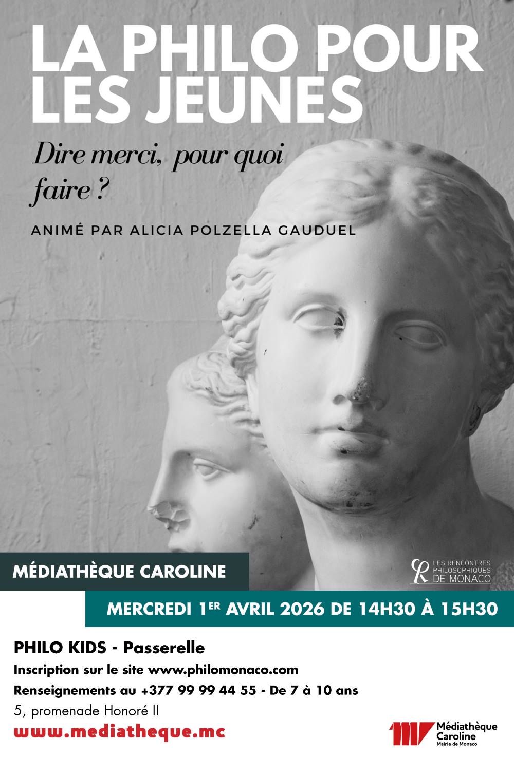 Nous vous donnons rendez-vous pour un atelier philosophique présenté par Alicia Gauduel, animatrice d’ateliers de philosophie pour enfants et adultes, le mercredi 01 avril de 14h30 à 15h30, en collaboration avec la Médiathèque de Monaco.