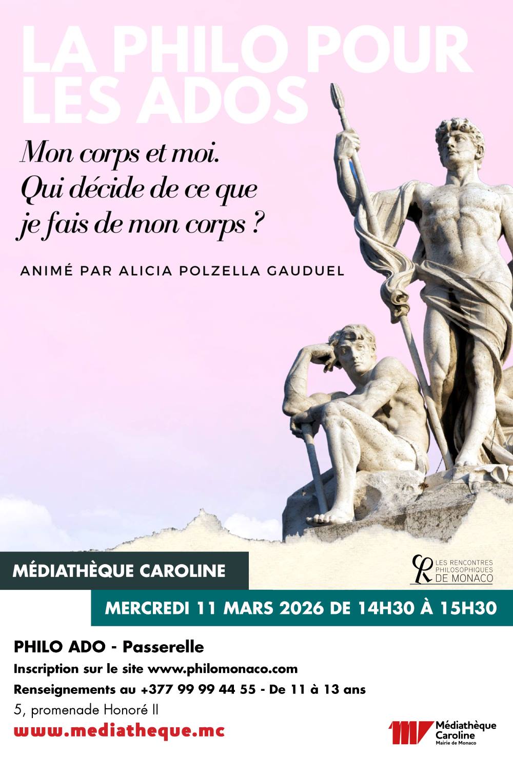 Nous vous donnons rendez-vous pour un atelier philosophique présenté par Alicia Gauduel, animatrice d’ateliers de philosophie pour enfants et adultes, le mercredi 11 mars de 14h30 à 15h30, en collaboration avec la Médiathèque de Monaco.