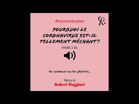 Bonjour Amedeo. Tu vois, tu as raison de dire que le coronavirus il est méchant. Parce qu’il fait beaucoup de mal, il tue beaucoup de personnes. Et peut-être que si on trouvait un médicament qui guérit de tout ça et qui le fait disparaître, on dirait qu’il est gentil. Mais en fait il faut réfléchir un petit peu plus. Il faut que l’on regarde autour de nous. Regarde autour de toi. Tu vois autour de toi, il y a ce que l’on appelle des choses. Tu vois, il y a des choses qui peuvent être naturelles, par exemple, un caillou, mais la plupart du temps, elles sont construites. Tu vois, une automobile, un jouet, une table, une chaise. Alors les choses, elles ont un poids, elles ont une dimension, elles sont grandes, elles sont petites, elles pèsent lourd, elles sont faites avec du métal ou avec du bois. Ça ce sont les choses. Puis, tu t’aperçois qu’il y a aussi autour de toi des arbres ou des fleurs. Alors ça, ce ne sont pas des choses, parce que ce sont des êtres vivants. Tu vois, si tu regardes bien, une fleur tu vois que d’abord il y a une tige, et ensuite elle pousse, la fleur elle s’ouvre et puis ensuite elle peut le lendemain, être un petit peu moins jolie, comme une rose, par exemple, qui peut se faner. Donc les arbres, les fleurs, les végétaux, ce sont des êtres vivants. Puis, il y a d’autres êtres vivants que tu connais encore mieux. Ce sont les animaux. Tu vois, il y a un petit chat, un petit chien, un loup, un rhinocéros, etc… Ça ce sont donc des êtres vivants que l’on appelle les animaux. Puis, à côté de ça, tu vois autour de toi, il y a des enfants, il y a des hommes, il y a des femmes, il y a des enfants qui sont grands, qui grandissent, il y a des grand-pères, des grand-mères, il y a toute la famille. Les personnes qui sont autour de toi, ta maîtresse, ton maître, etc… Ça ce sont des êtres vivants, ce sont des êtres humains. Alors la différence c’est que les êtres humains, par rapport à tous les autres, c’est à dire les choses, les animaux ou les plantes, et bien, quand ils font quelque chose, ils savent qu’il font quelque chose. Par exemple, si toi tu te lèves pour aller dans ta chambre chercher un jouet, en même temps que tu y vas, tu sais que tu es en train d’y aller. Ça, ça s’appelle la pensée. C’est toujours dans ta tête. Sauf quand tu dors, tu te rends pas compte que tu dors, mais dans la journée, quand tu fais des choses, dans ta tête tu sais que tu les fait. Et puis il y a aussi autre chose, des fois tu es assis et puis tu veux te lever, tu veux aller chercher quelque chose. Tu vois, tu manifestes un désir ou tu manifestes une volonté. Tu vois, tu veux faire ça. Et puis un matin, peut-être tu dis, je ne veux pas aller à l’école ou alors je veux aller a l’école. Alors pour que l’on dise de quelqu’un qu’il soit méchant, il faut qu’il l’ait pensé ou qu’il l’ait voulu. Tu vois, si toi tu te dis, demain quand je verrai mon copain ou ma copine, je lui dirai qu’elle est moche. Alors que c’est pas vrai. Ou alors qu’elle est mal habillée. Et tu sais qu’en disant ça tu leur fait mal, peut-être tu vas les faire pleurer, tu vas les vexer. Alors si tu t’aperçois que tu veux que l’autre ait mal et que ça te fait plaisir, alors on dira que tu es méchant. Mais seul les hommes, les êtres humains, peuvent être méchants. Tu vois le caillou, il ne dit pas tiens je vais me lever et je vais me lancer contre quelqu’un pour lui faire mal. Donc seul les hommes peuvent être méchants. Alors le virus il n’est ni méchant, ni gentil, parce que ce n’est pas un être humain, ce n’est pas une plante non plus, c’est pas un être vivant, c’est pas un animal, c’est une chose bizarre, invisible mais qui n’a pas de volonté et qui n’a pas de pensées. Donc il est ni méchant, ni gentil, seul les êtres humains peuvent être gentil ou méchant. Voilà, je t’embrasse Amedeo. À bientôt. Ciao, ciao !
